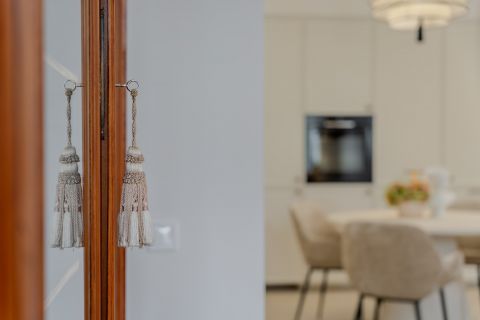 A lakás teljes bútorzattal együtt eladó, gondosan megtervezett, elegáns enteriőrrel.