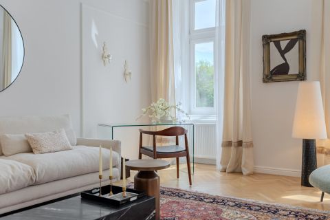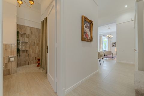 Квартира расположена в 5-этажном полностью отреставрированном доме 1832 года постройки с лифтом, выполненном в стиле сецессион, обладающем высокой исторической и архитектурной ценностью. В квартире сохранены оригинальные декоративные элементы, лепнина и внутренние деревянные ставни, создающие элегантную историческую атмосферу, гармонично дополненную современным ремонтом.